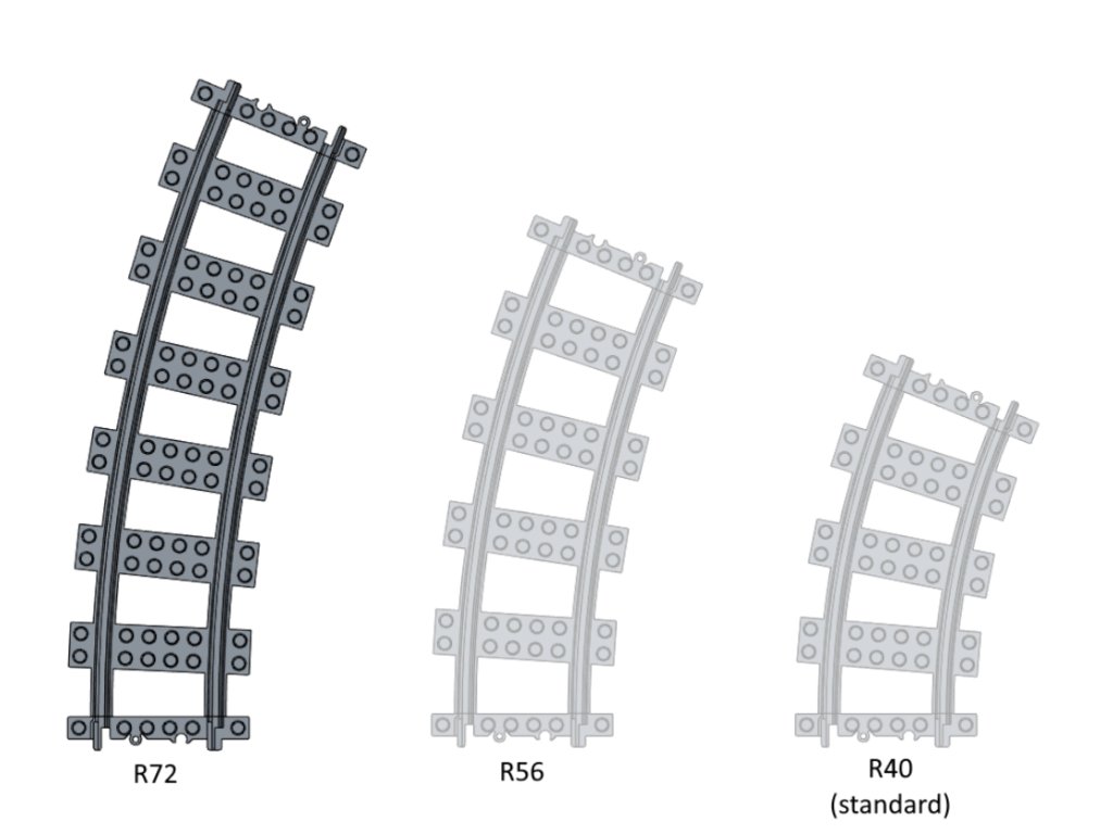 Zatáčka velkého poloměru a čtvrtinové délky (úhlu), pro kombinaci se zatáčkou R72